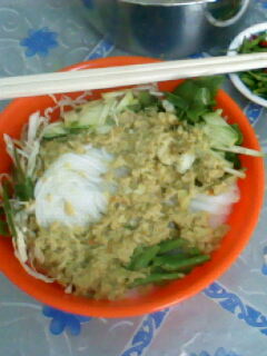 This is how Cambodian Noodle look like. Well, it supposed to be nicely shaped but I kindly shake them a lot so it does look good now. But I am sure it will taste well. hehe